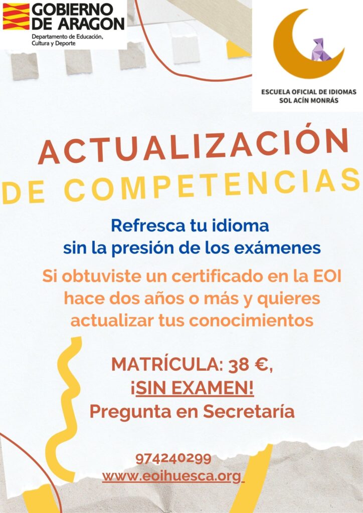Para obtener información sobre las vacantes de nuestra escuela puedes escribir a direccion@eoihuesca.org