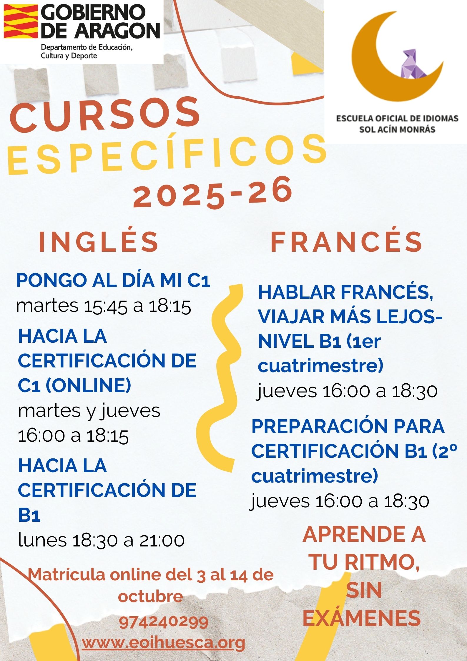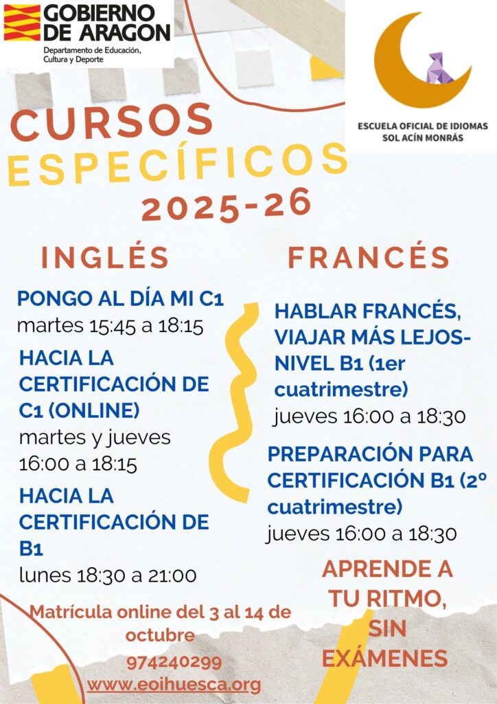 Para obtener información sobre las vacantes de nuestra escuela puedes escribir a direccion@eoihuesca.org